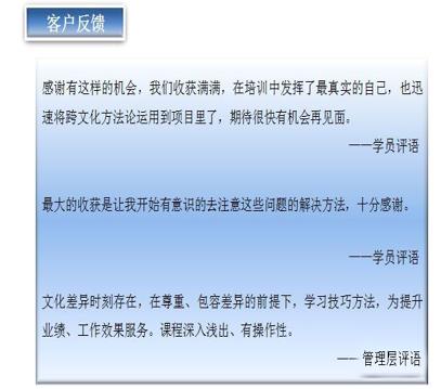 在这样的背景下,来自不同国家的人才共同参与公司的日常管理与生产活动,跨文化的沟通与协作显得成为重要。根据其需求,我们设计了《跨文化沟通》项目。
